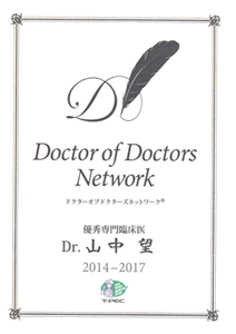 Doctor of Doctors Network (2014-2017)の優秀専門臨床医に認定されました。